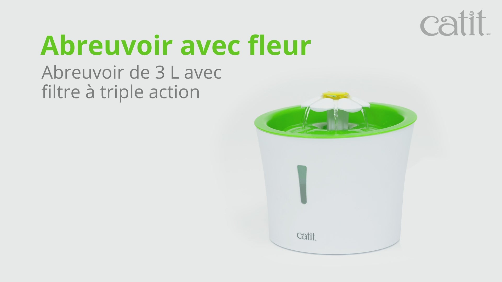 - Est muni de trois réglages de débit d’eau pour plaire même aux chats difficiles